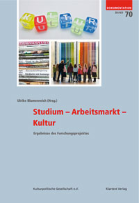 Blumenreich, Ulrike (Hrsg.): »Studium – Arbeitsmarkt - Kultur. Ergebnisse des Forschungsprojektes«, Bonn/Essen: Institut für Kulturpolitik/Klartext, 2012, 399 S., ISBN 978-3-837507-31-7, zahlr. Abb. und Tab., 17,00 Euro